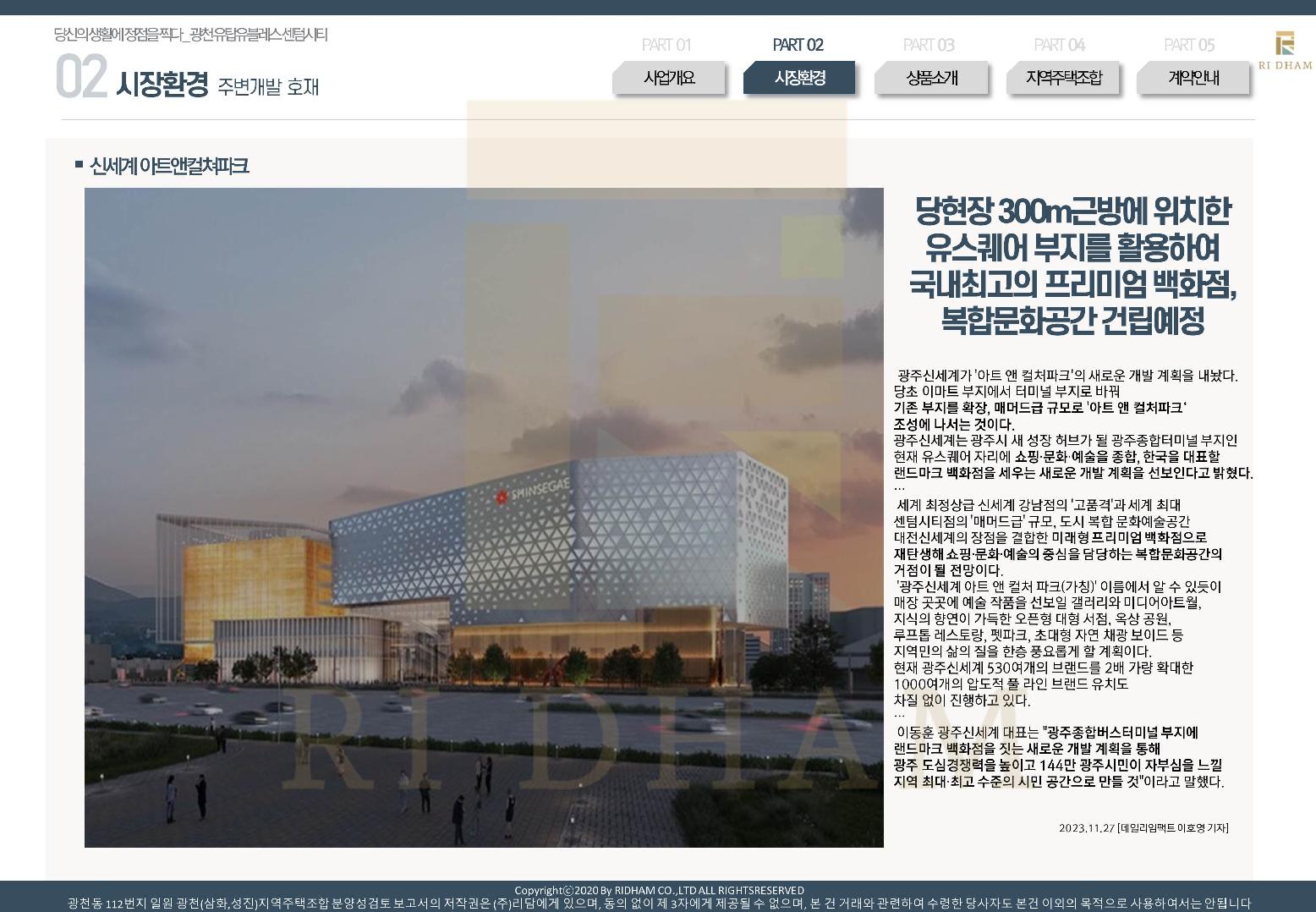 무엇보다 이 단지는 입주까지 불과 3,400만원 초기자금만 준비하면 되는 가벼운 계약조건이 장점이면서 신세계 아트앤컬쳐파크(예정)를 필두로한 문화복합쇼핑시설이 근거리에 자리하면서, 더현대 챔피언스시티(예정)까지 어우러지면 광주와 전남을 대표하는 쇼핑특구로 성장하면서, 주변의 아파트 및 부동산가치를 동시에 높여주게 될 것입니다.