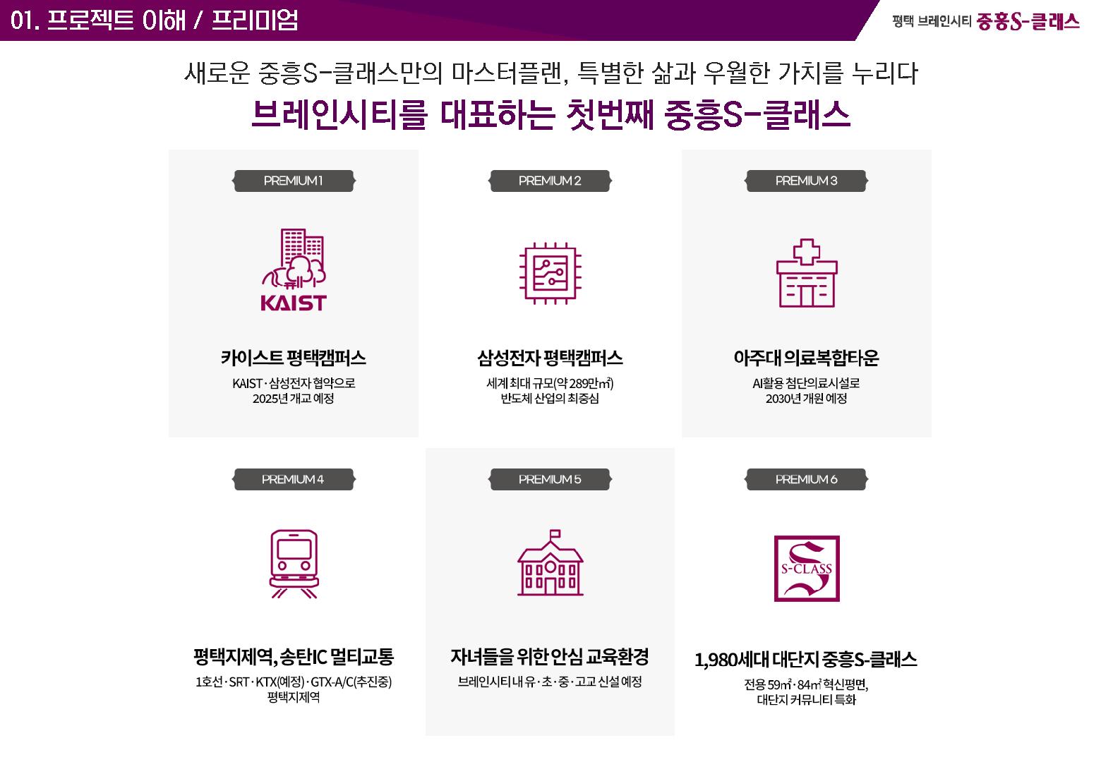안녕하세요! 중흥건설(주) 책임 시공중인 평택 브레인시티 중흥s-클래스 아파트의 분양 정보를 살펴보는 시간을 갖겠습니다. 브레인시티는 교육과 메디컬, 기업, 주거, 상업시설이 복합개발되는 신도시급 택지지구로 국내를 넘어 세계적으로도 인정받는 명문대학 카이스트 평택캠퍼스와 아주대종합병원 의료복합타운이 들어서는 등 기존 고덕국제도시에서 품지 못한 시설이 들어서며 실수요와 투자자 모두에게 주목받는 현장으로 평가됩니다.