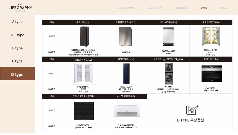 중견건설사 두손건설이 책임시공을 진행한 3호선 남부터미널역세권인 지젤 라이프그라피 서초는 대지면적 3,048.10㎡, 지하 6층 ~ 지상 22층, 오피스텔 399실 규모입니다. 건립평형대는 세부적으로 전용면적 A타입 56.42㎡(105세대), A-1타입 56.42㎡(42세대), B타입 59.83㎡(147세대), C타입 69.51㎡(21세대), D타입 56.16㎡(84세대) 등으로 구성되기에 소형아파트에 준하는 주거시설로 분류됩니다.