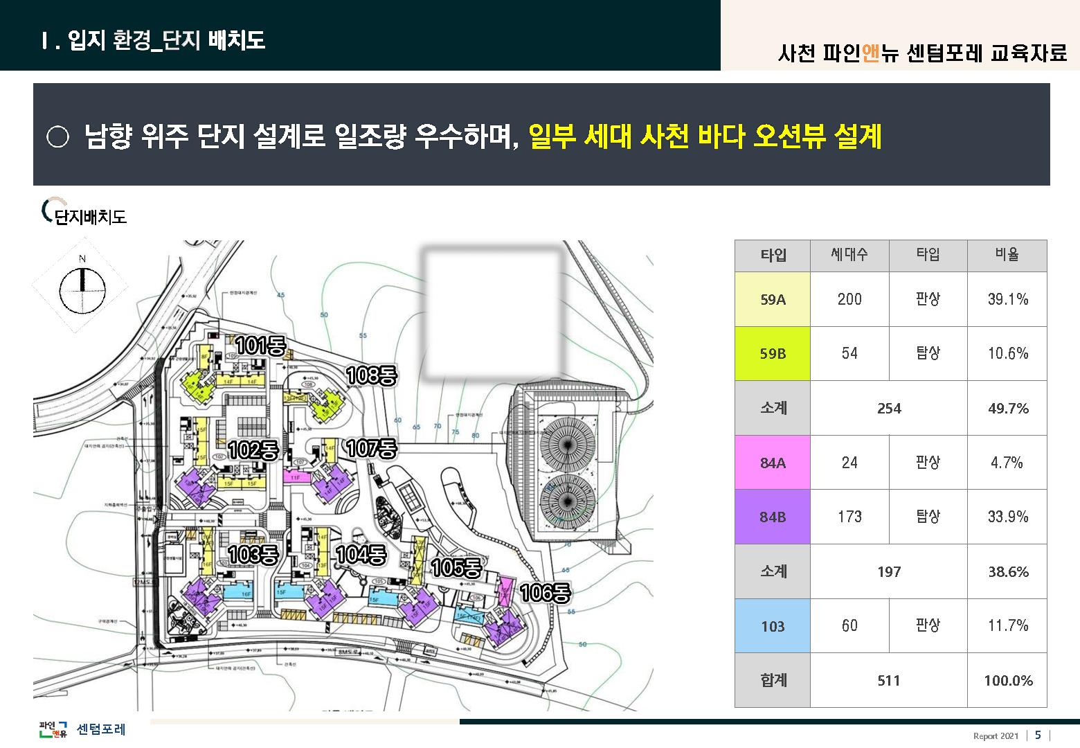 단지는 8개동이며, 총 511세대로 규모는 지하 2층 ~ 최고층수는 16층입니다. 전체적으로 단지배치가 남서향, 남동향 등 남향 위주로 설계되기에 일조량과 채광, 햇빛이 잘 비추는 아파트로 건립되며 일부 세대는 사천 바다 오션뷰 설계로 이뤄집니다. (※, 바다 조망 세대는 완전분양 상태이므로 사전에 반드시 담당자에게 물량이 남아 있는지 확인하시길 바랍니다)