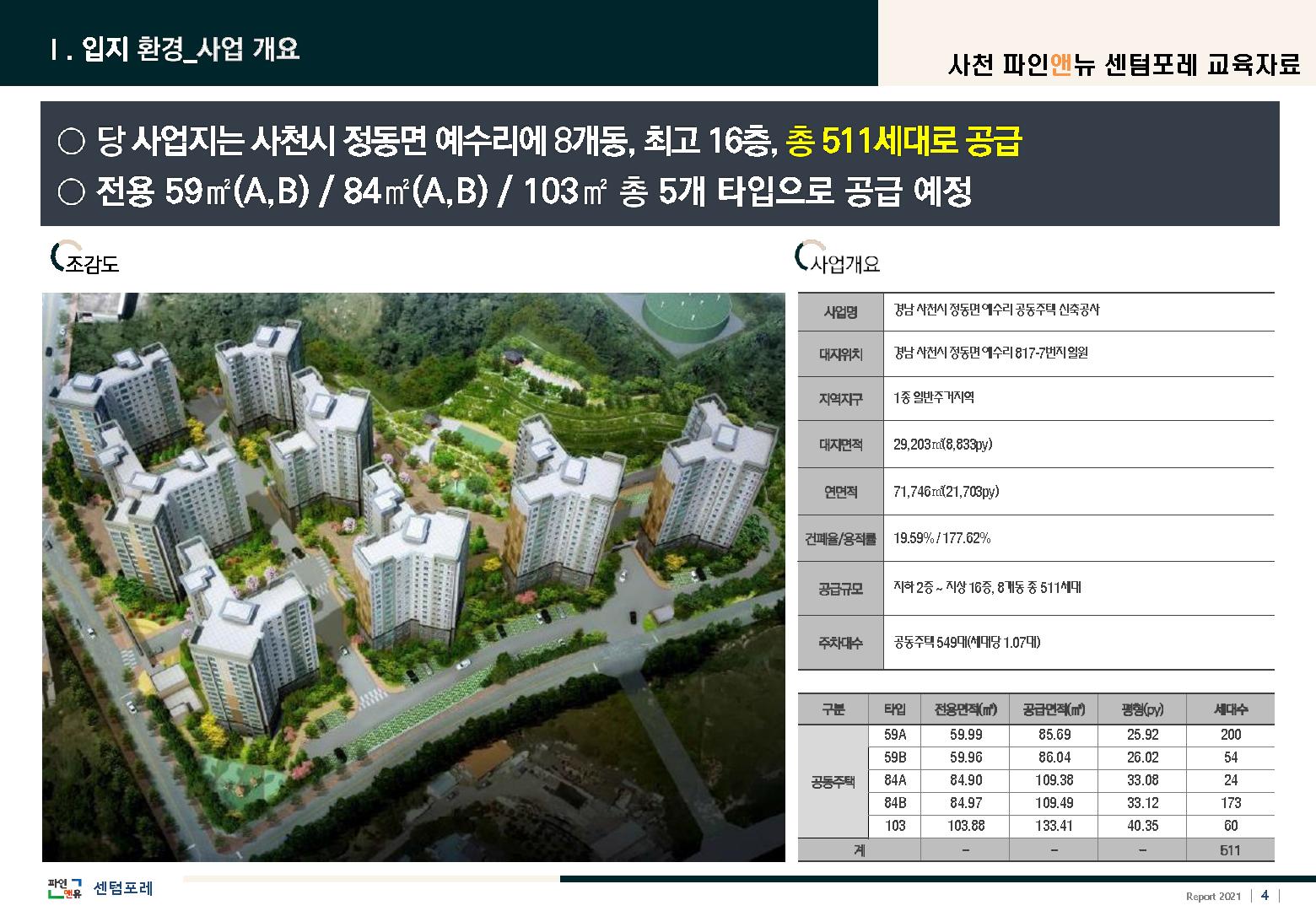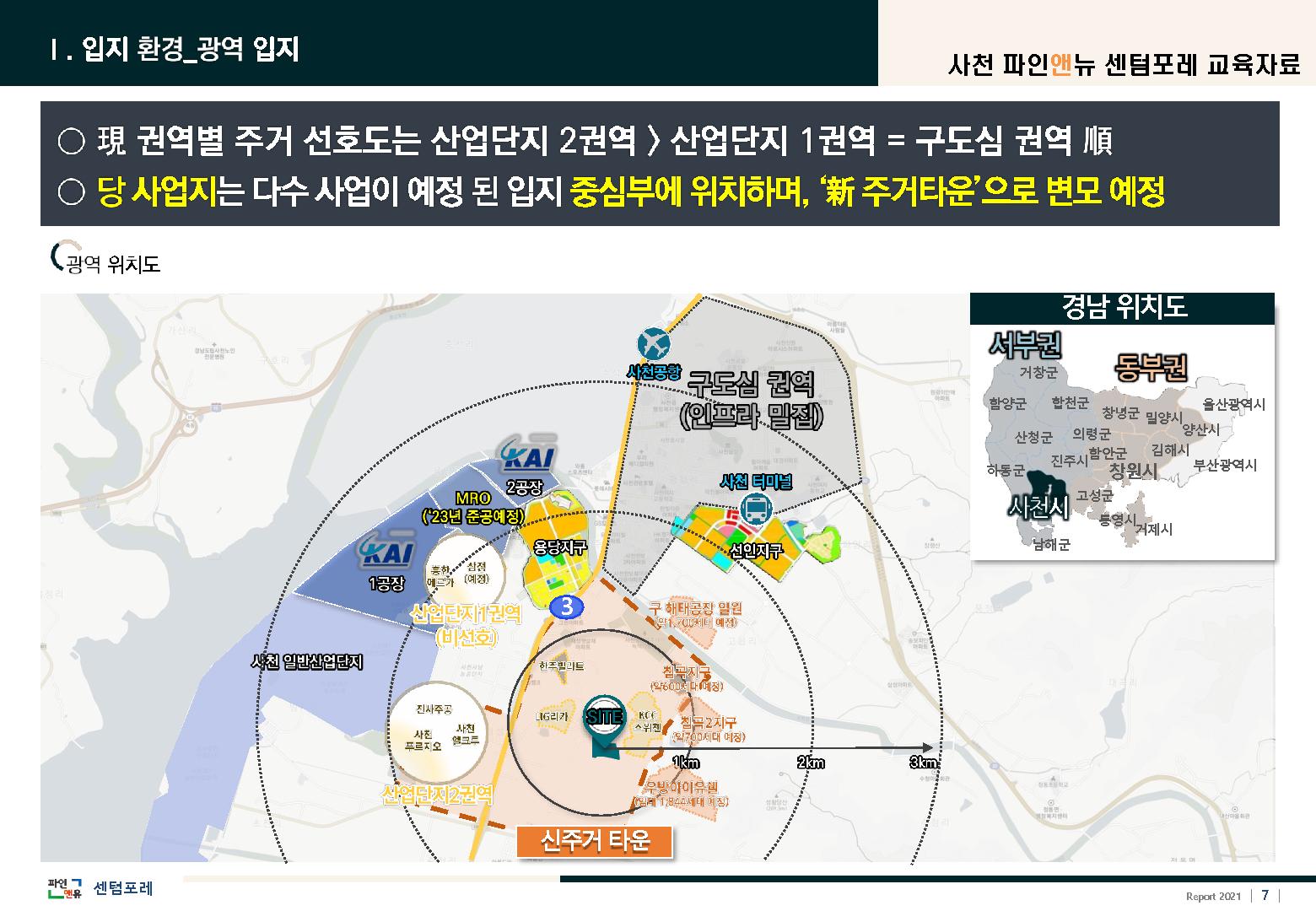 한편, 사천시는 지난 이력을 보면 '95년 행정구역 개편에 따라 삼천포시와 사천군이 사천시로 통합되어 현재에 이른 상태로 구)삼천포시 대비하여 항공우주산업(KAI) 및 관련 산업단지가 집중된 이 건립지 일원은 직주근접의 편리함으로 현재는 물론이고 향후 사천시 주거문화를 선도하는 곳이 될 것이며 지금 현재의 주변 건립세대와 향후 들어서는 단지를 아우르면 미니신도시급으로 자리매김될 것입니다.