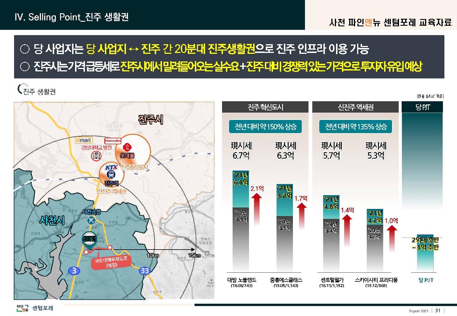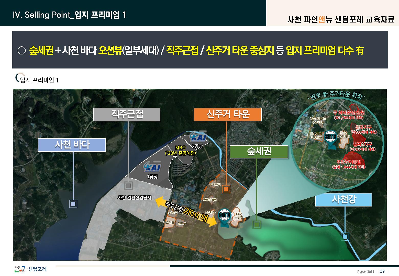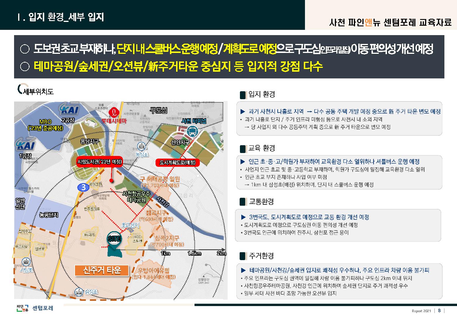 단지 주변에는 테마공원을 비롯한 숲세권이면서 KAI 등 국내 항공우주산업의 핵심 시설이 근접한 위치로 2024년 연초에 확정된 항공우주청의 사천시 설립 확정의 호재로 지속적인 인구유입으로 주택수요가 급증함에 따라 거주와 투자 모두에세 미래비전의 가치가 주목되는 '25년 2월 입주 아파트로 현재 마감재 공사가 한창 진행중인 안심 주거단지로 평가됩니다.