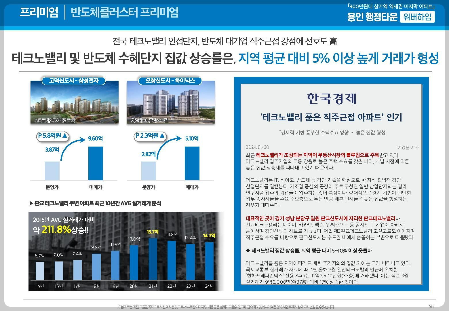 삼성전자에서도 향후 20년간 300조원을 투자하여 세계 최대 규모의 반도체 클러스터를 조성할 계획이 발표되어 수원, 기흥과 화성, 평택 고덕과 유기적으로 연결되는 입지인 용인시 처인구 일원에 대대적인 개발로 제2의 용인시 성장, 대한민국 미래비전을 이뤄낼 것으로 기대됩니다.