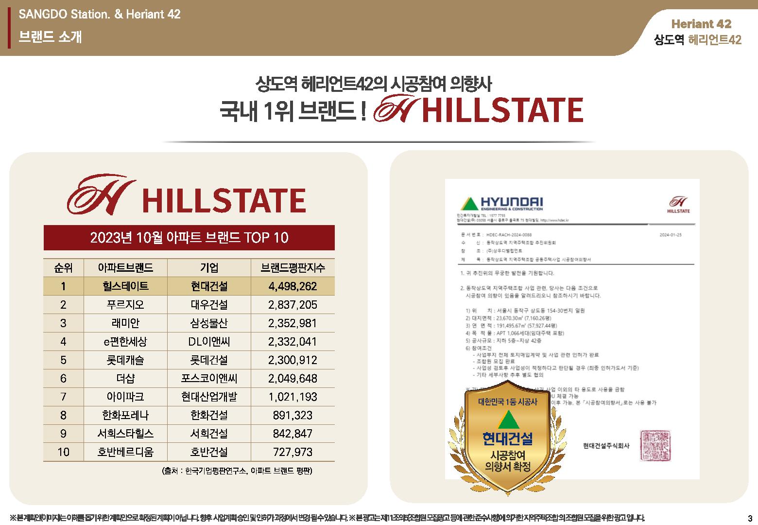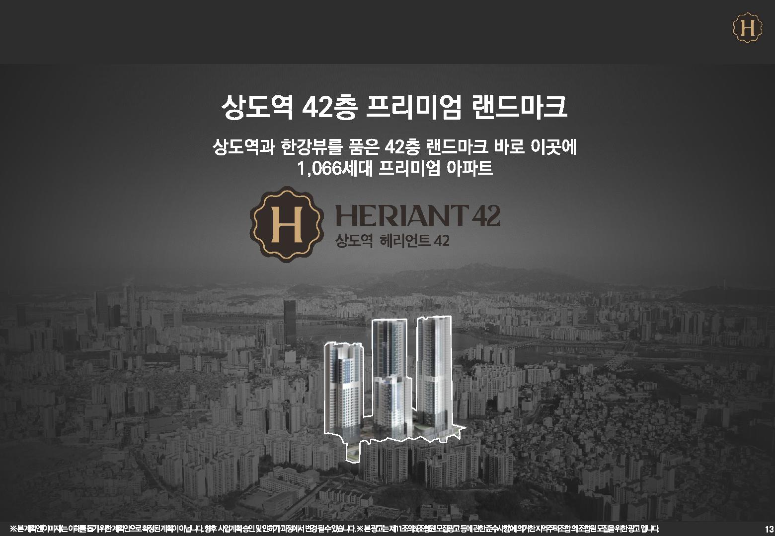 재차 강조드리는 부분으로 국내 1위 브랜드 힐스테이트가 시공참여 의향사로 함께할 계획인 상도역 헤리언트 42는 숭실대역입구의 상도힐스테이트의 성공적인 지역주택조합 사업 완료와 더불어 준강남권인 동작구를 대표하는 주거단지로 거주만족과 투자성공의 가치를 모두 선사할 것으로 기대됩니다.
