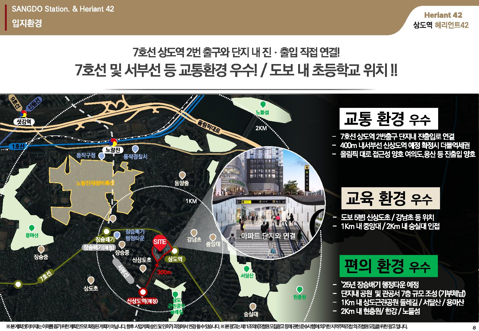 현재 개통 운행 중인 7호선 상도역 2번 출구와 직통 진입 출입이 가능하도록 설계가 이뤄질 계획으로 향후, 서부선 공사진행으로 교통여건은 더욱 개선될 예정입니다.