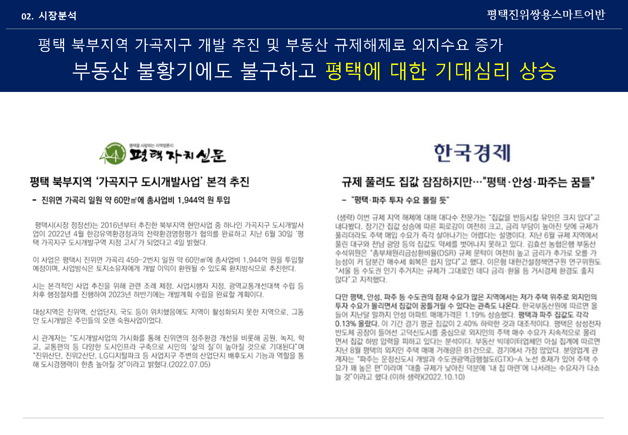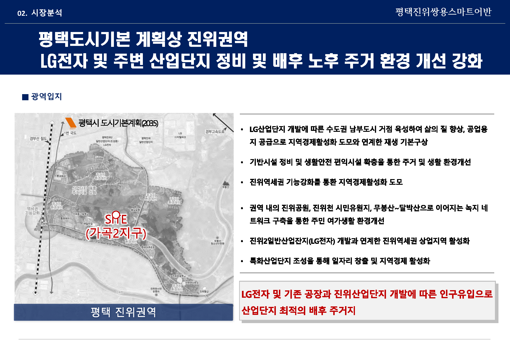 더 나아가 브레인시티의 개발 진행으로 산학협력 콤플렉스가 조성되면서, 주거와 상업, 업무가 가능한 토지이용계획이 고덕국제도시와 더불어 경기 남부 수도권의 최대 인구 규모의 도시로 인정받는 기업도시이자 신흥 주거지이며, 1호선과 KTX지제역 등 경부고속도로~서해안고속도로~평택제천고속도로 등 교통요충지의 면모를 튼실하게 갖춘 상황입니다.