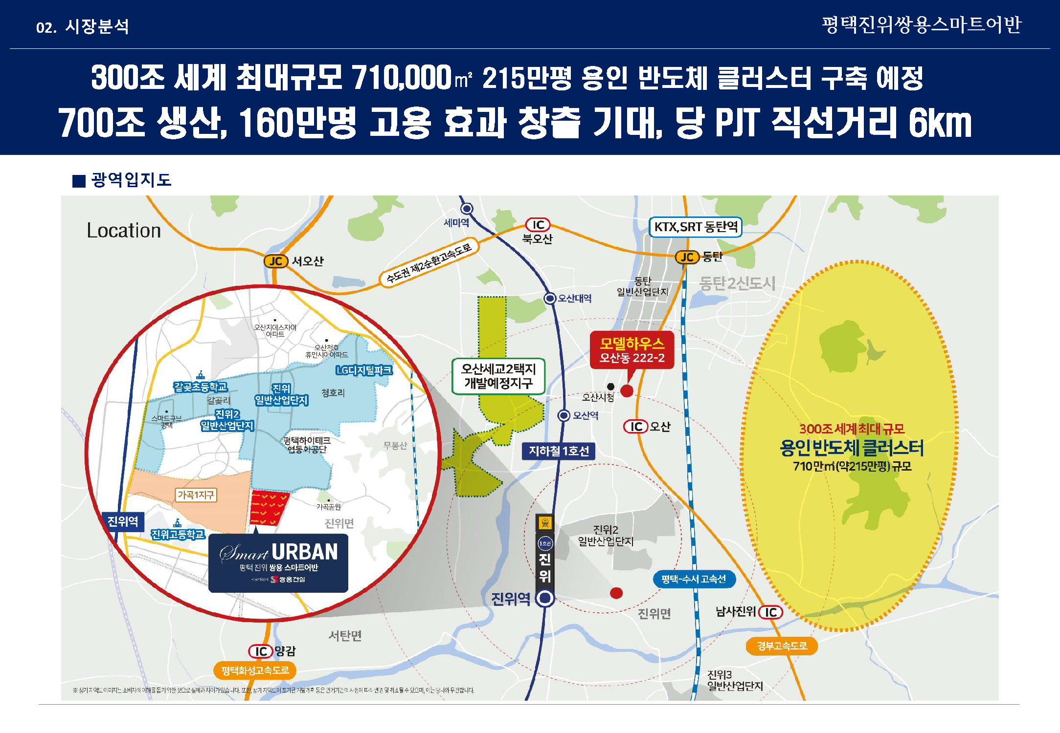 용인 반도체 사업지 일원은 향후 300조 원의 투자로 세계 최대규모 국가 중추 산업기지이자 동북아를 넘어 아시아 최대의 비즈니스 전략지역으로 거듭날 것으로 예상되며 차량으로 이동하여도 불과 10분대이기에 충분한 대체주거지이자 직주근접 요건을 당당히 갖추고 있는 점 꼭 확인 부탁드립니다.