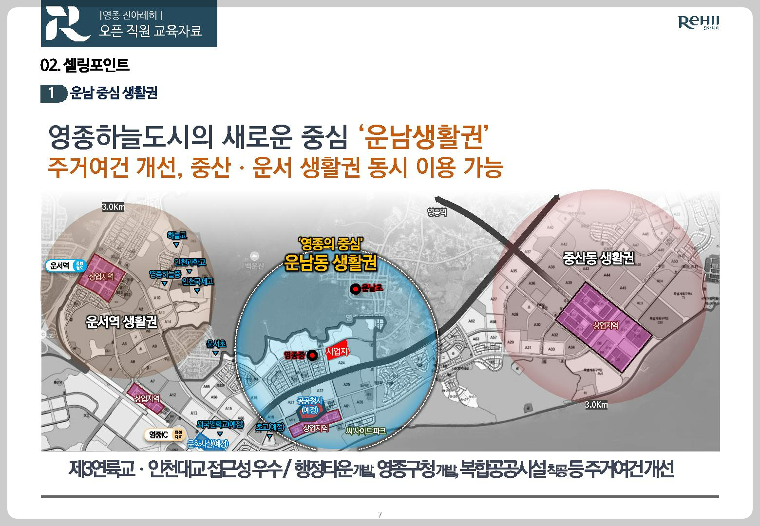 어느 도시이건 구청과 행정타운, 복합공공시설이 모인 곳에 신규 인구 유입과 관련 비즈니스업체, 관공서 지원 업체 등이 다수 자리하는 것처럼 운남생활권 또한 인천대표 접근의 우수성과 제3연륙교의 원스톱 이동 교통망 완비에 따라 영종하늘도시를 대표하는 주거지로서 선두를 이끌어갈 것입니다.